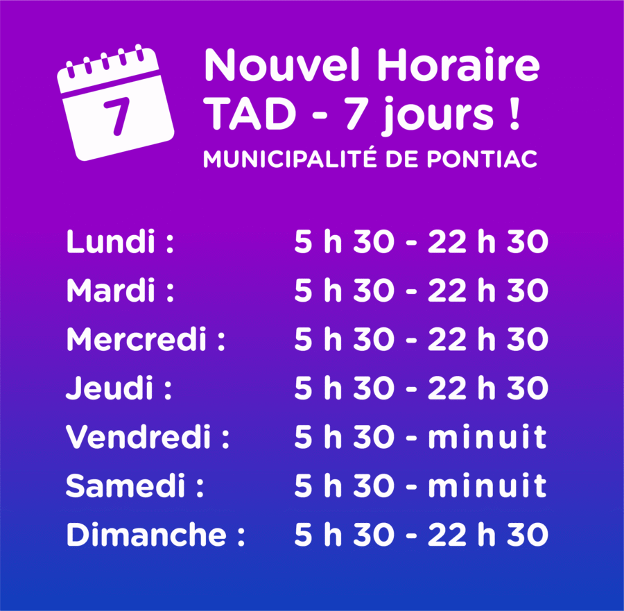 Le TAD maintenant 7 jours sur 7 dans la municipalité de Pontiac !